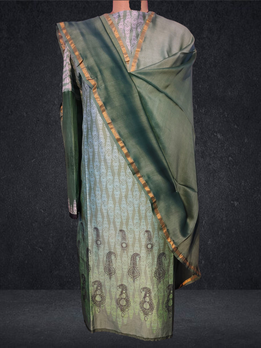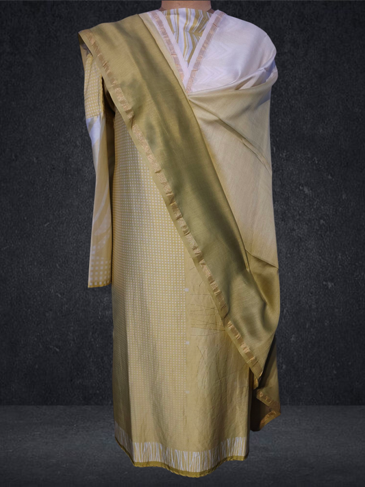 Semi Stitched Chanderi Casual Suitset