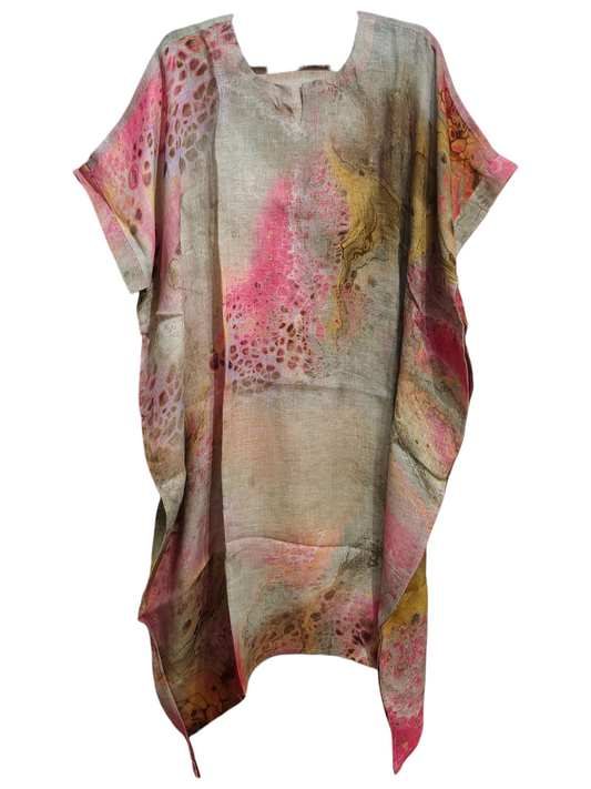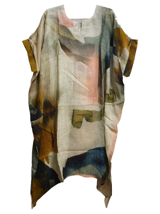 Stitched pure linen Printed Kaftan ready size 42-44