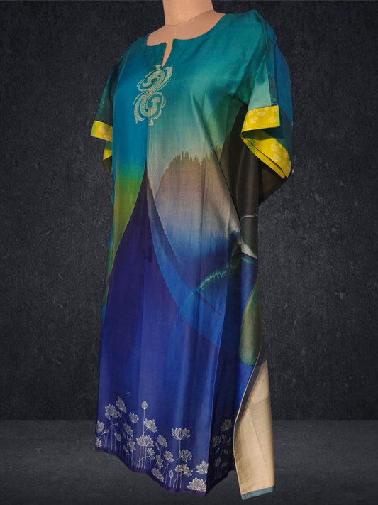 Stitched Chanderi Digital Printed Kaftan