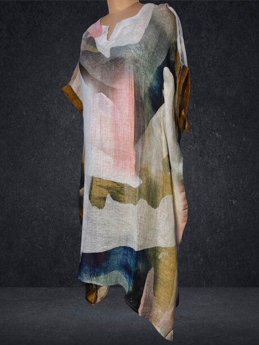 Stitched Silk Linen Kaftan