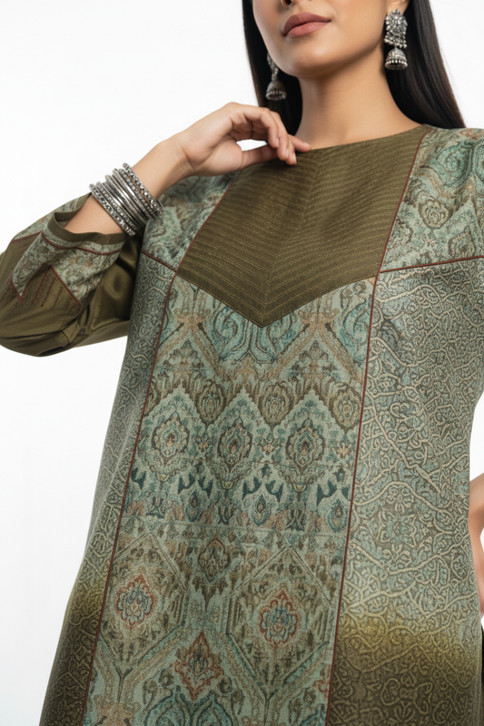 Semi Stitched Chanderi Ajrakh Short Tunic
