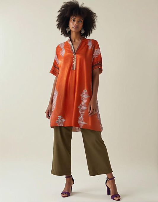 Semi Stitched Chanderi Zariwoven Short Tunic