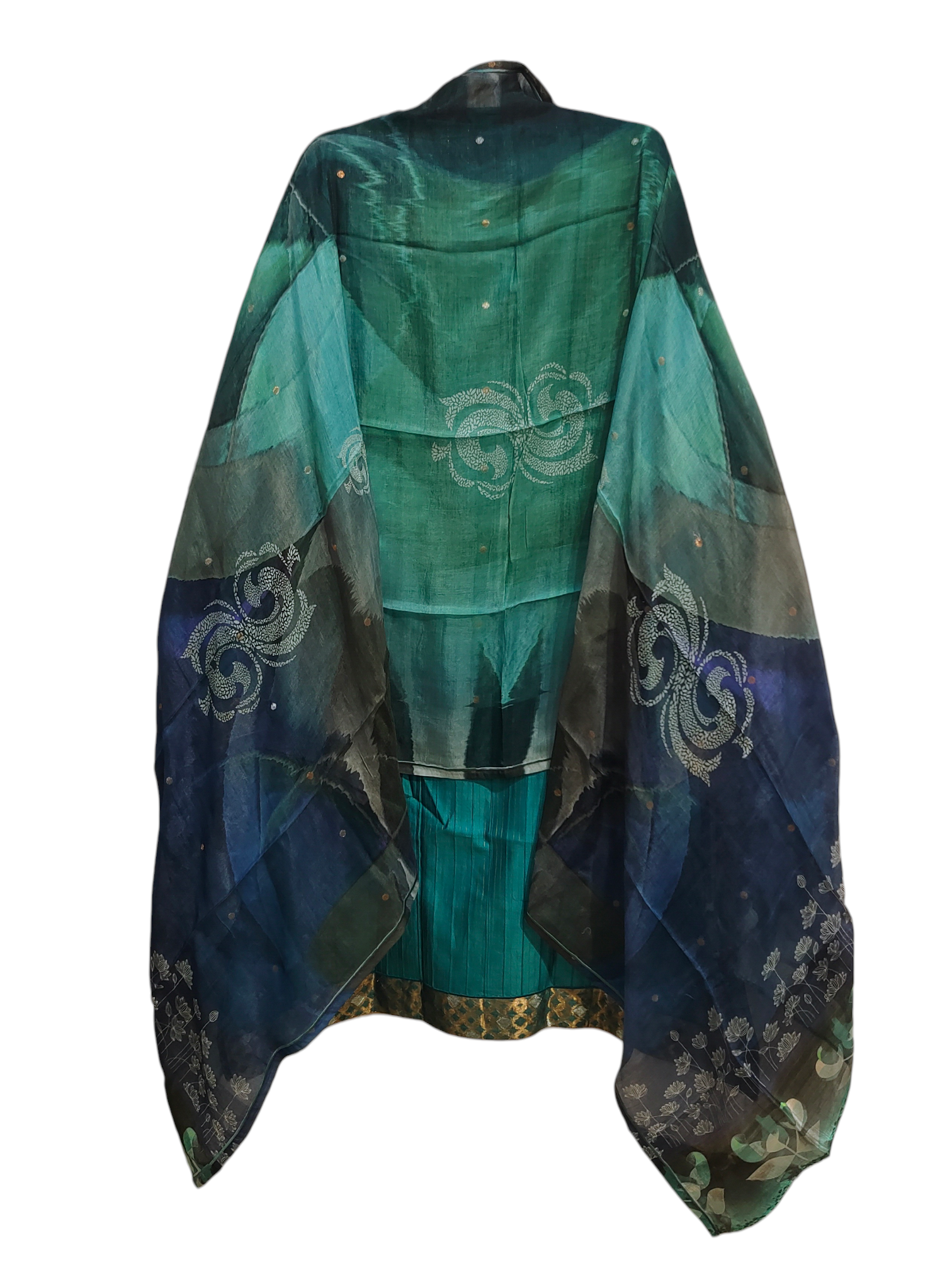 • Silk Chanderi dupatta with tonal teal layers and floral jaal inspired motifs