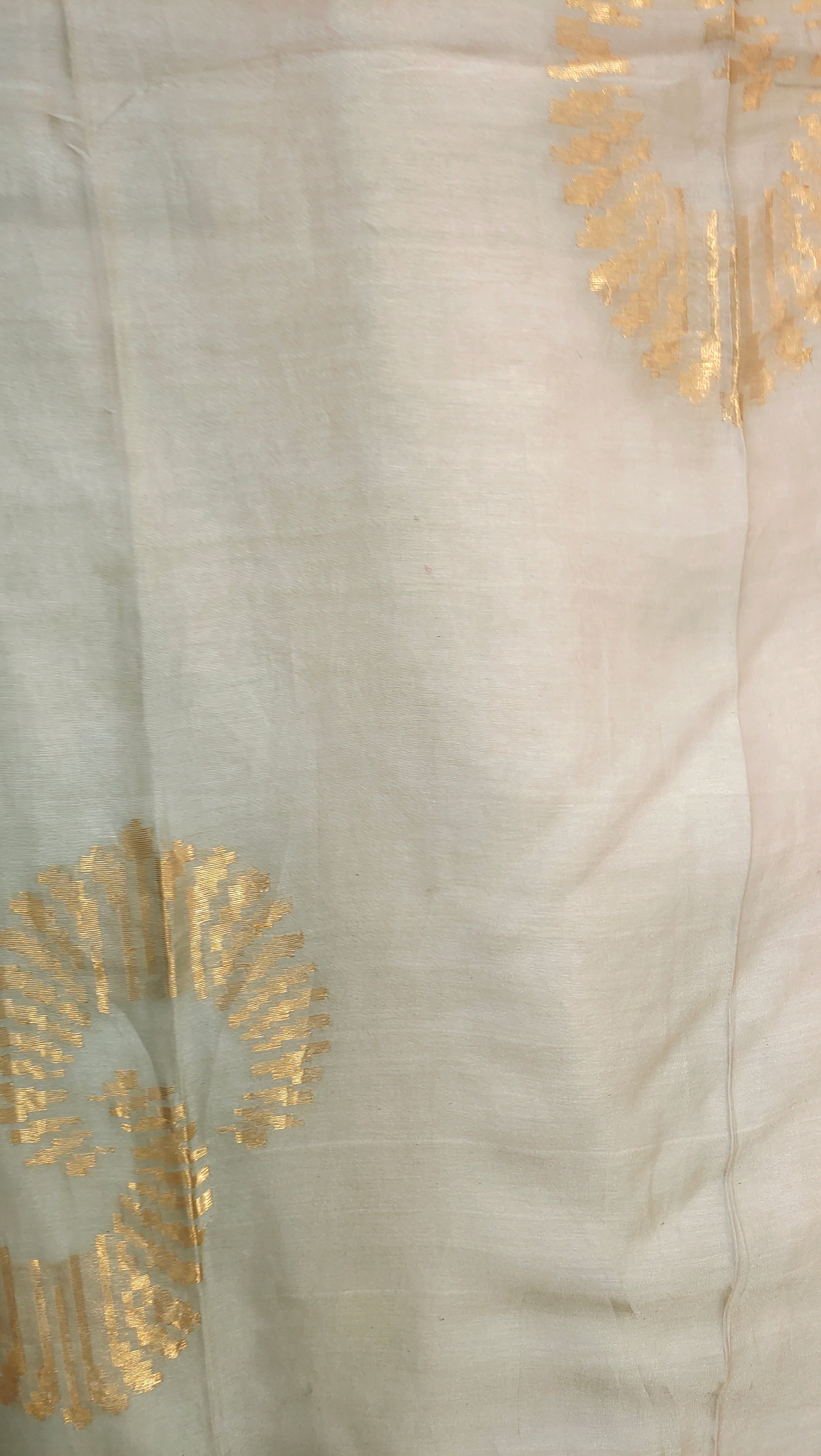 • Silk Chanderi dupatta in muted sage tones with woven motifs and zari borders